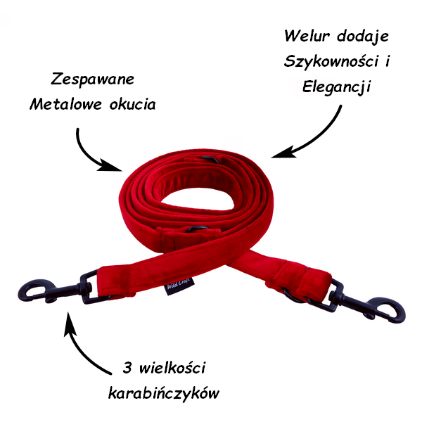 Smycz Welurowa 2m przepinana Czerwona